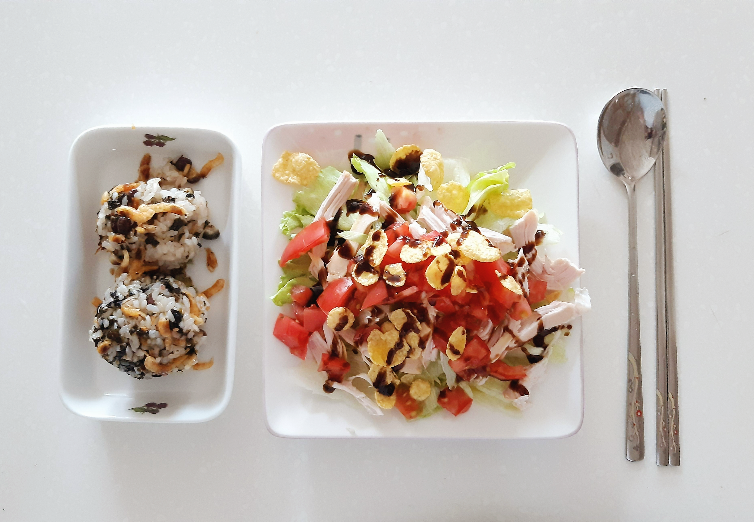 간단하게 주먹밥과 샐러드로 상을 차렸다.