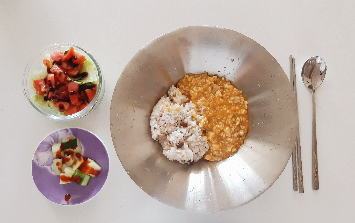 그래서 어제 저녁 먹고 남은 마파두부로