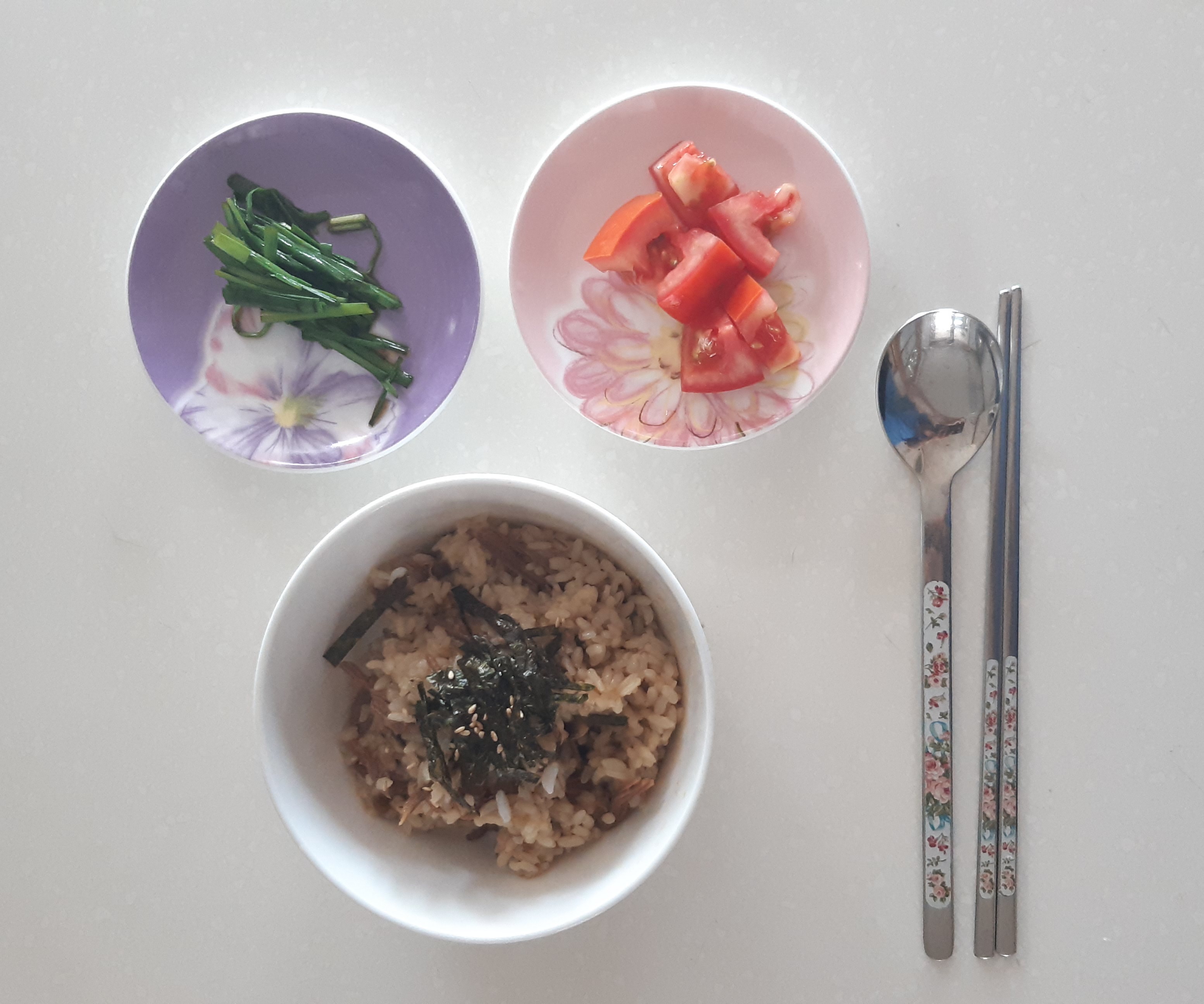 요즘 아침밥으로 장조림 비빔밥을 약 2주째 먹고 있는 둥이.